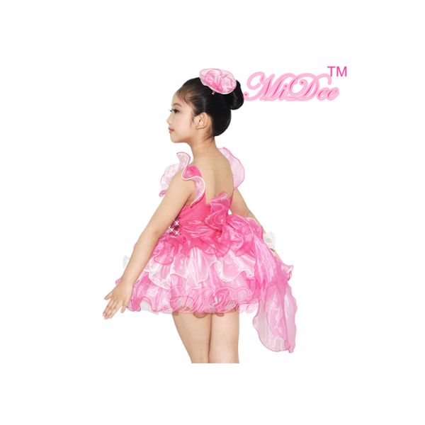 | Design | Waist had pleated three tired organza with lettuce edging and white pettiskirt |